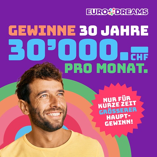 Am 2. Oktober gibt es bei EuroDreams einen noch grösseren Hauptgewinn: 30’000 Franken – 30 Jahre lang.