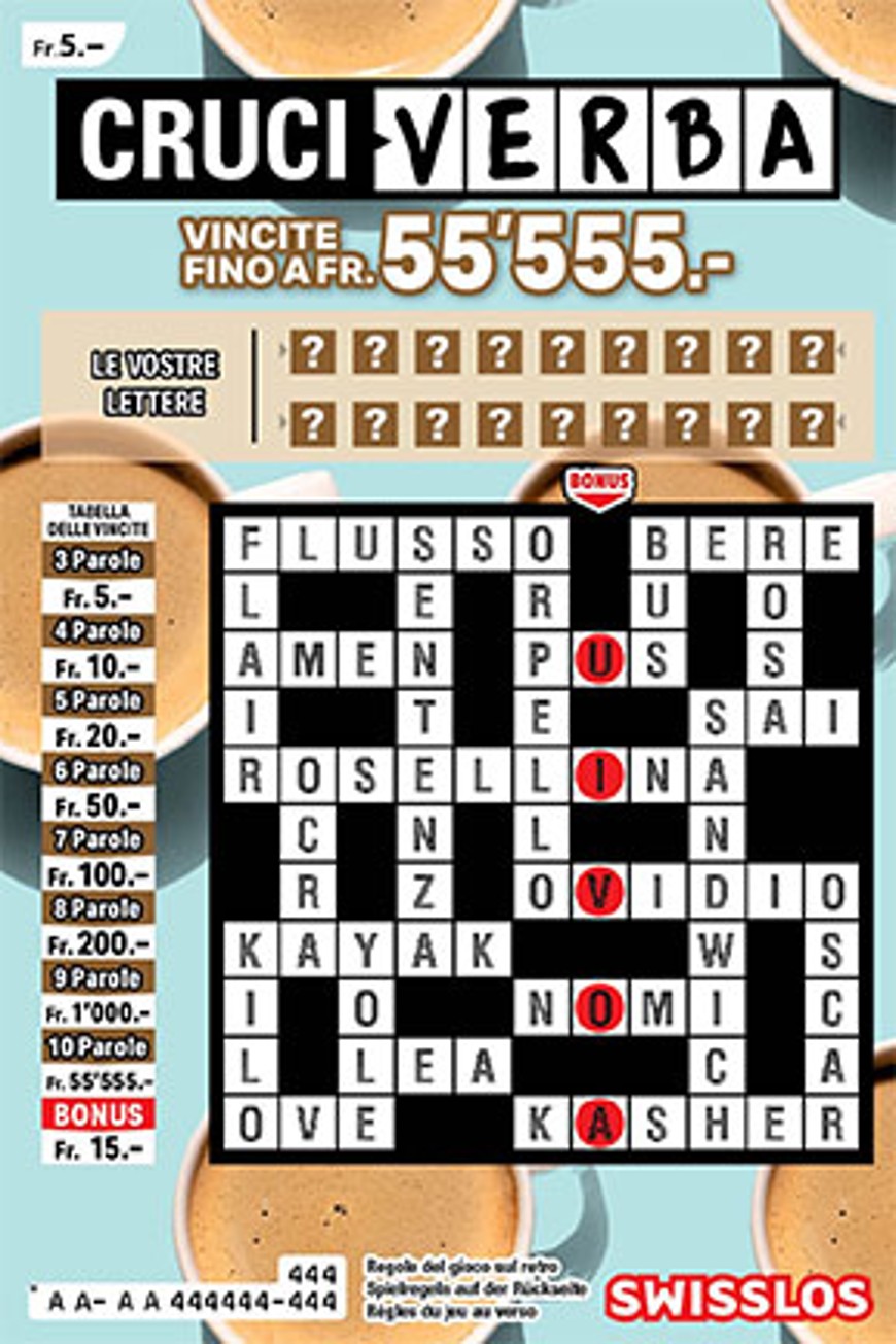 Cruciverba: Vincite fino a CHF 55'555.-